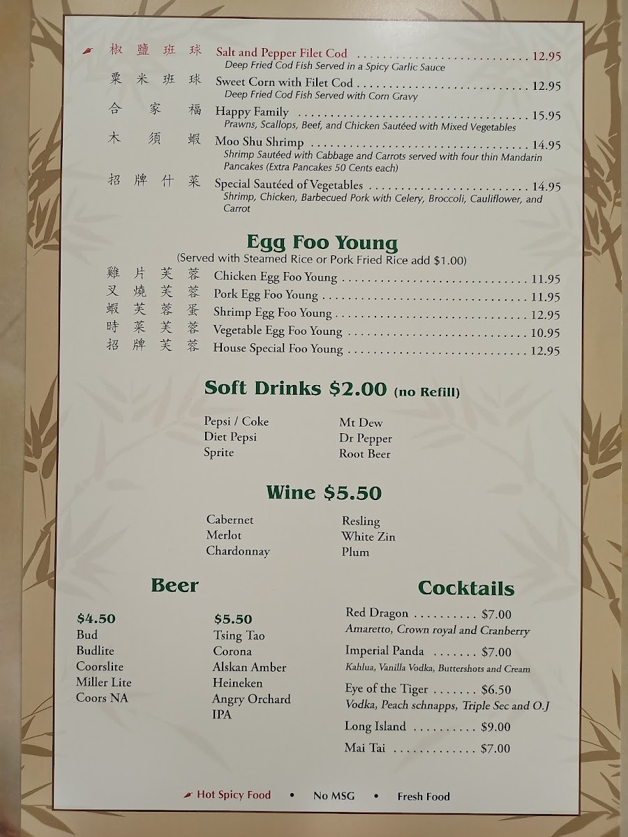 Sautéed shrimp served over choice of chop suey vegetables, crispy noodles, lo mein, or soft noodles.